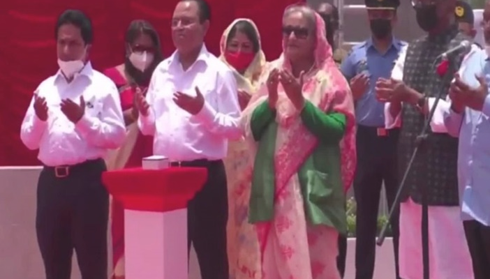 পরে অতিথিদের সঙ্গে নিয়ে পদ্মা বহুমুখী সেতু প্রকল্পের সড়কপথের শুভ উদ্বোধন করেন। মোনাজাতের পর উদ্বোধনী ফলক ও ম্যুরাল-১ উন্মোচন করেন।